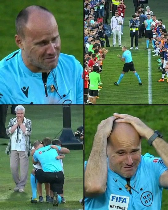 Mateu Lahoz is utoljára fújt első osztályú bajnokin, édesanyja, akit oly sokszor emlegettek a spanyol stadionokban és párja búcsúztatták a találkozó végén.